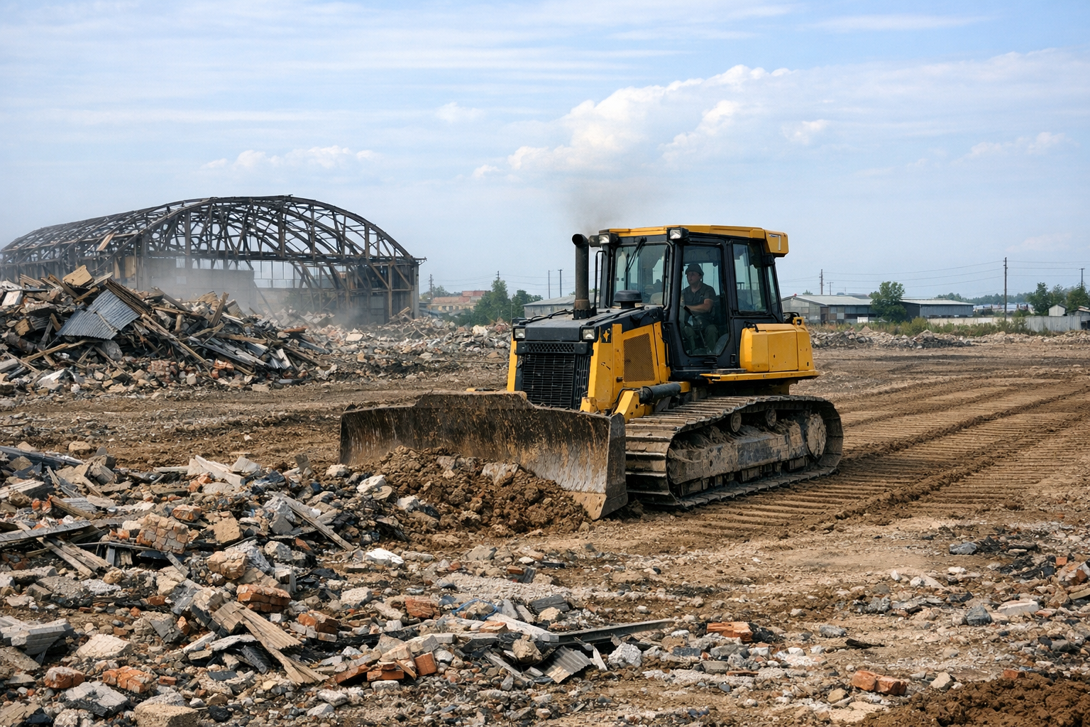 Сроки зависят от объема и сложности работ. Небольшая перепланировка — 1-3 дня, снос здания — от 2 недель. Точные сроки определяем после осмотра объекта.