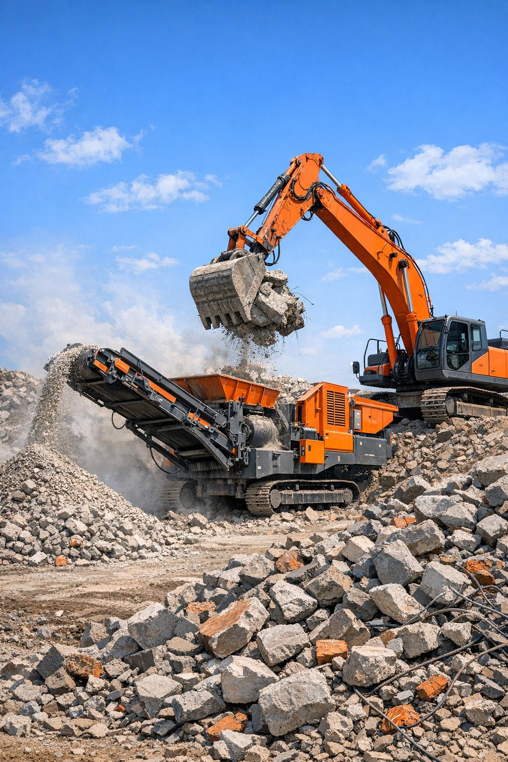 Перерабатываем бетонные плиты и ЖБИ изделия образовавшиеся на строительных объектах ,а так же объектах сноса и реновации