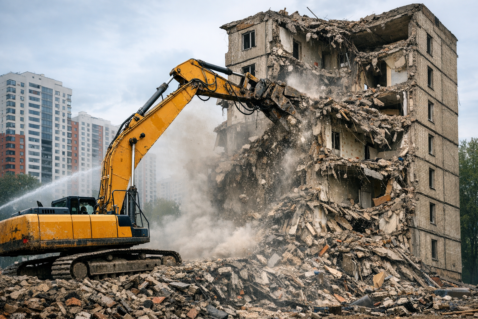 Применяем технологии контролируемого сноса, устанавливаем защитные экраны, проводим вибрационный мониторинг, разрабатываем специальные мероприятия для каждого объекта.